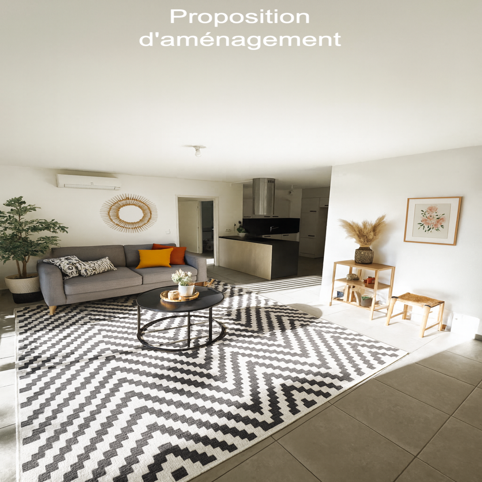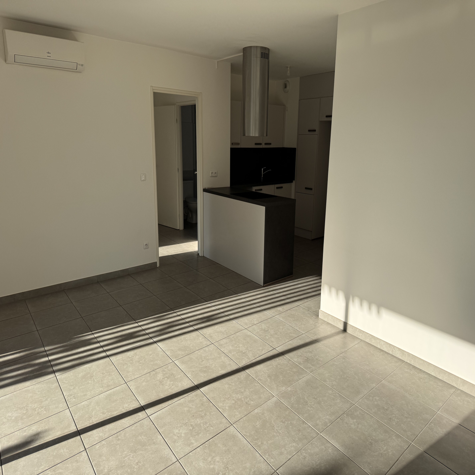Une cuisine ouverte sur le séjour donnant directement sur la terrasse.